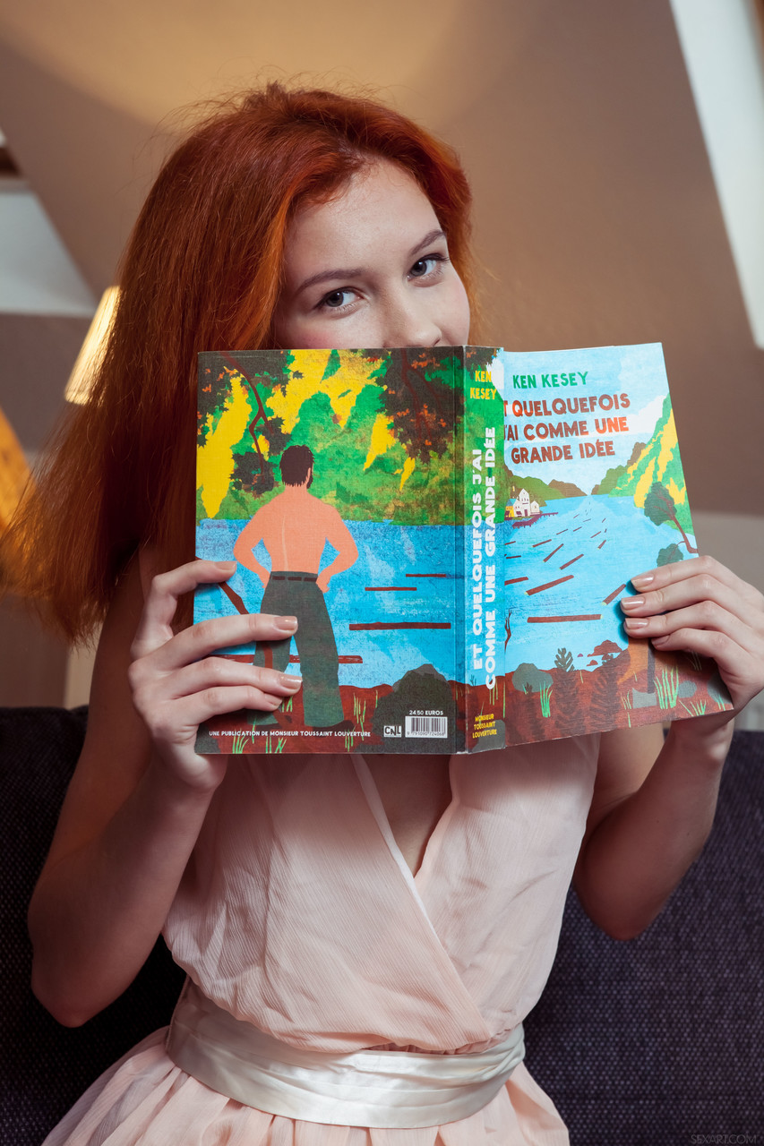 Sex Art Gallery: pale redhead teen Ambre strips, spreads her beautiful tight pussy close-up, skinny flat-chested cutie masturbates.