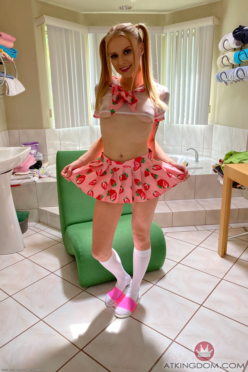 Blonde Teen Kenzie Reeves Rubs Bald Pussy In Knee Socks