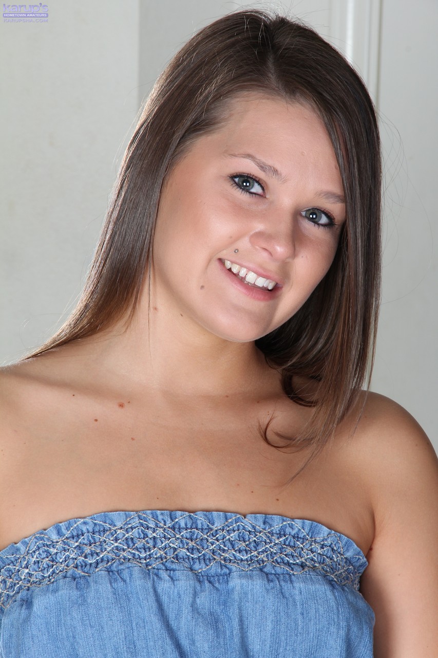 Abby rocks in Karups Hometown Amateurs, spreading shaved teen pussy and showing tiny tits, ass, nipples while undressing and posing topless with spread legs in this hot amateur gallery.