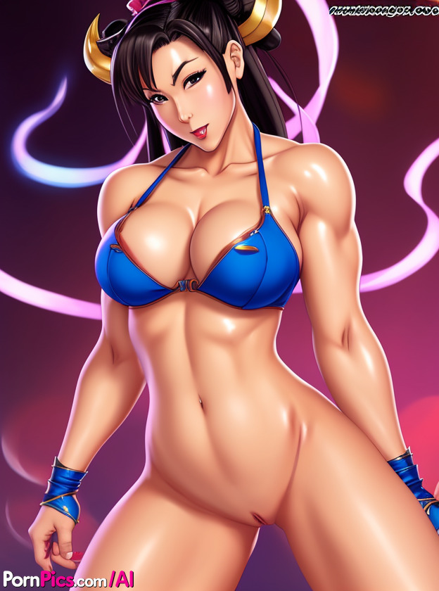 Curvy anime Chun-Li from Street Fighter spreads her legs wide in exclusive hentai gallery, revealing huge AI-rendered breasts and shaved pussy for fans of big tits and explicit gaming fantasies.