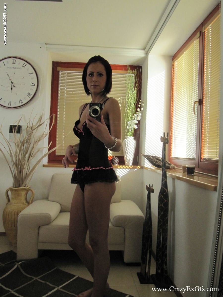 Sexy amateur babe Jessalyn flaunts nice boobs, shaved pussy and short hair while stripping and spreading in front of mirror for cheating girlfriend fantasy.