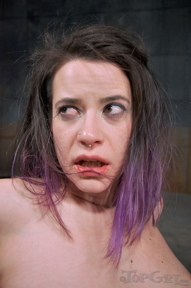 Cute redhead teen Freya French submits to kinky lesbian bondage, nipple teased, strapon sucking, shaved ginger BDSM, Lezdom, tiny tits, face used, teen BDSM play.