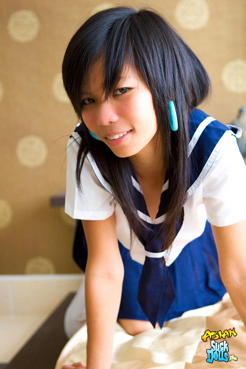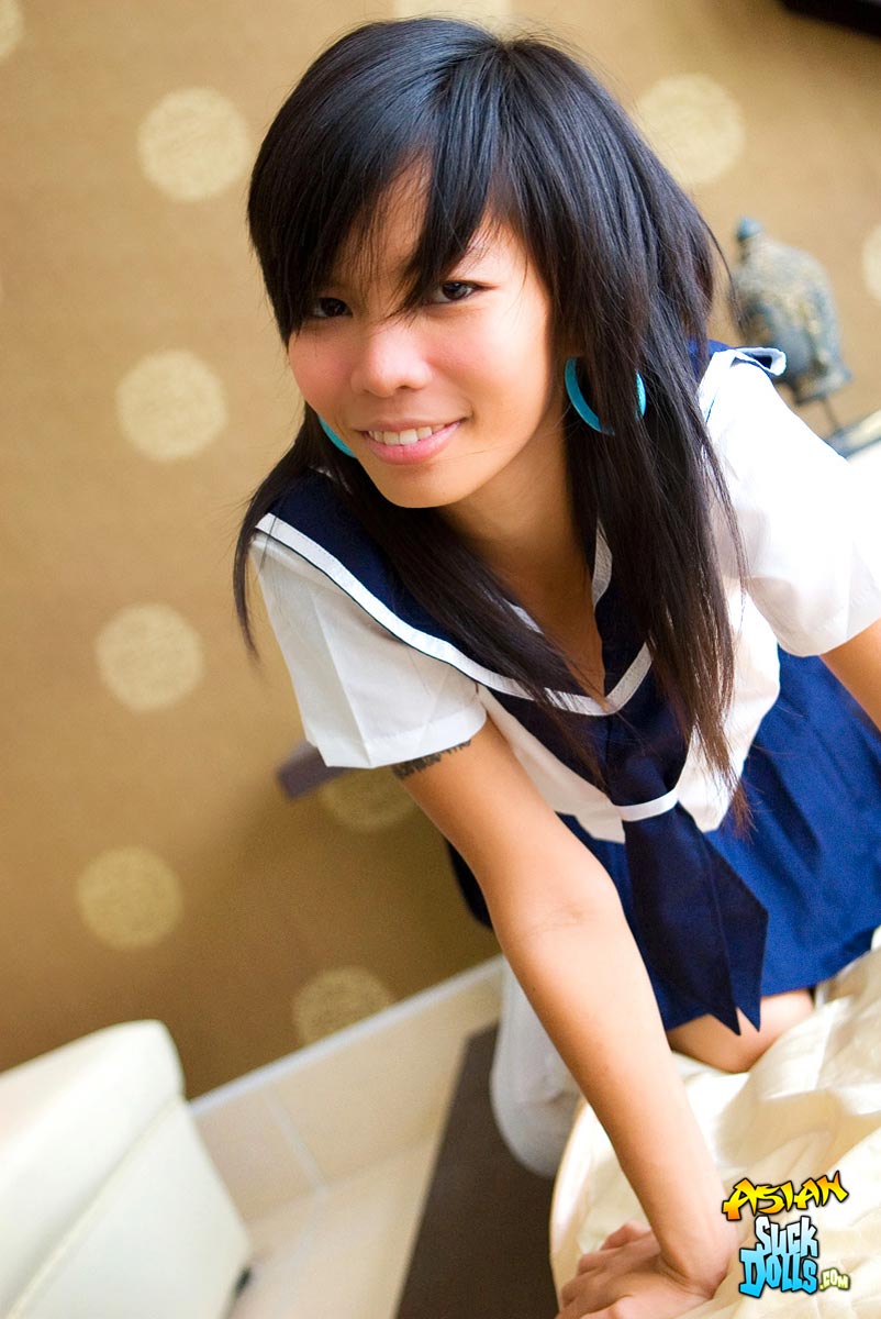 Skinny Asian Schoolgirl Puy Strips Uniform And Flashes Petite Body - Gallery Information