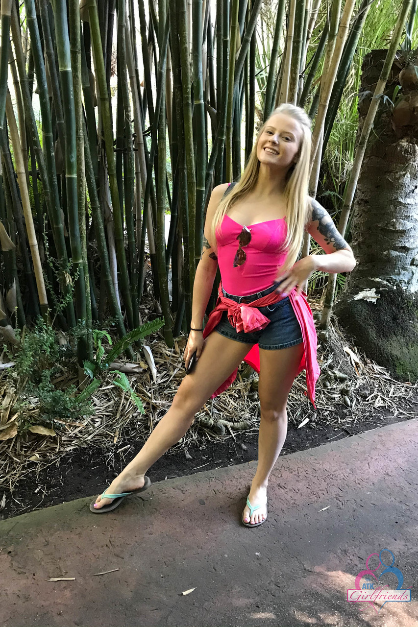 Cute blonde teen Paris White strips nude on vacation, giving her amateur boyfriend a facial cumshot finale in these hot ATK Girlfriends porn pics.