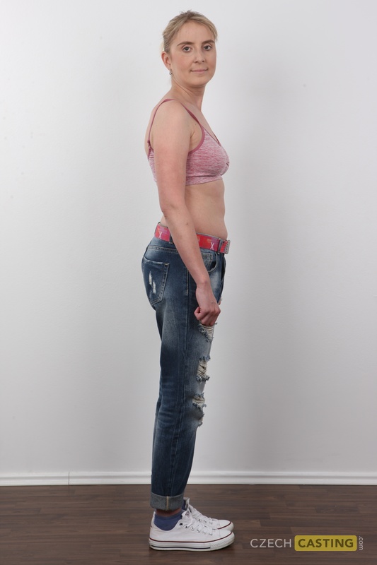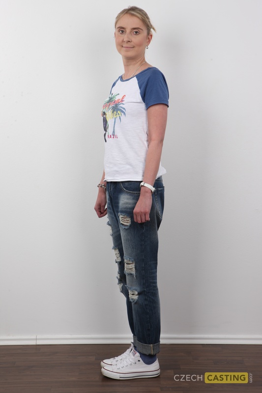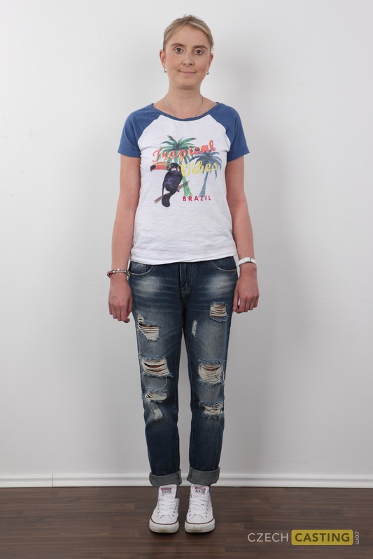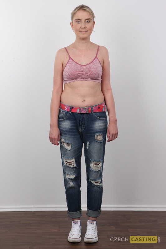 捷克业余金发美女褪下牛仔裤,在试镜特写中露出丰满双乳、翘臀与挺立乳头,赤裸上身时羞涩一笑。
