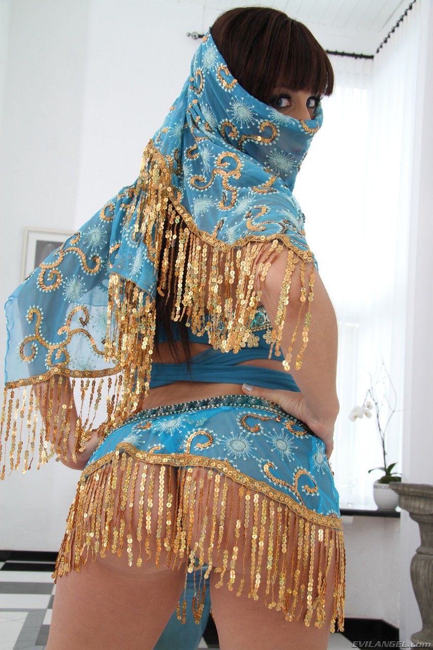 豐滿後宮棕髮美女炫耀她的大胸部和圓潤的大屁股 - 图库信息