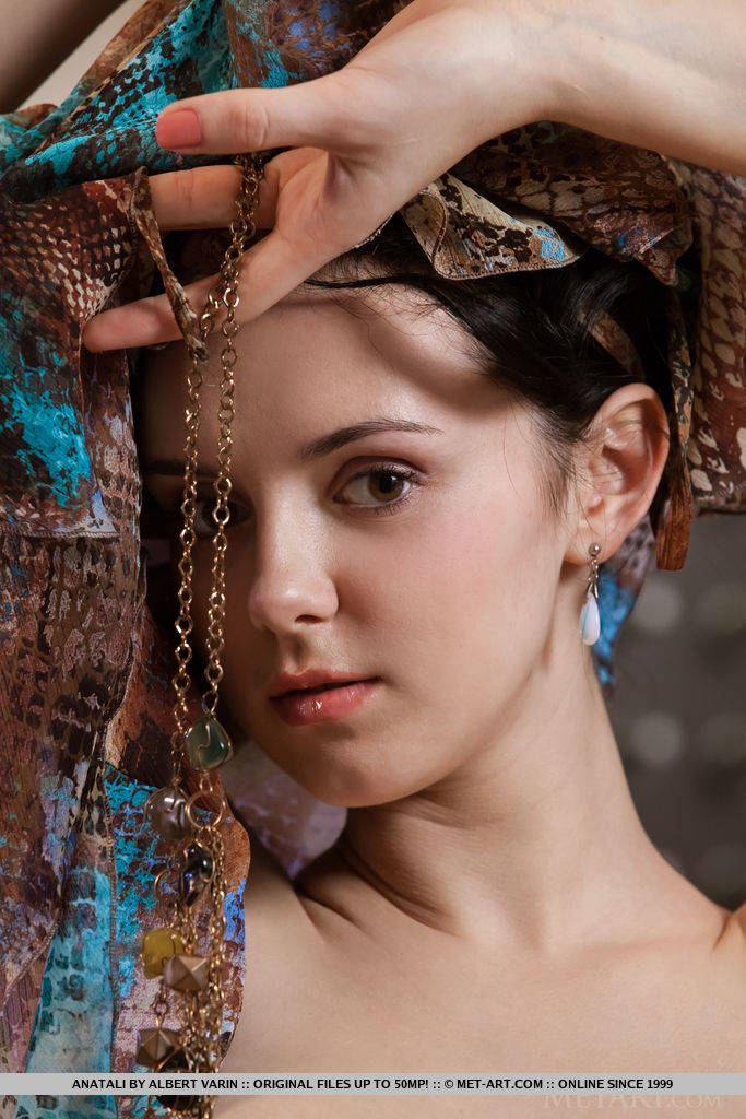 害羞的黑发少女Anatali在厨房喝茶时亮出光滑的粉色小穴和紧致的菊门,大张双腿上演可爱撩人秀。