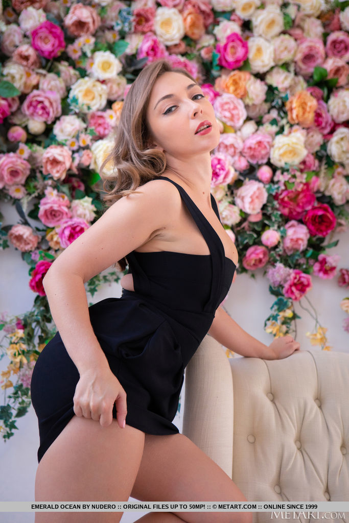 Emerald Ocean 脱掉她紧身的黑色礼服和红色高跟鞋,露出光滑的少女私处,完美的PAWG臀部和僵硬的乳头,在内衣特写中。
