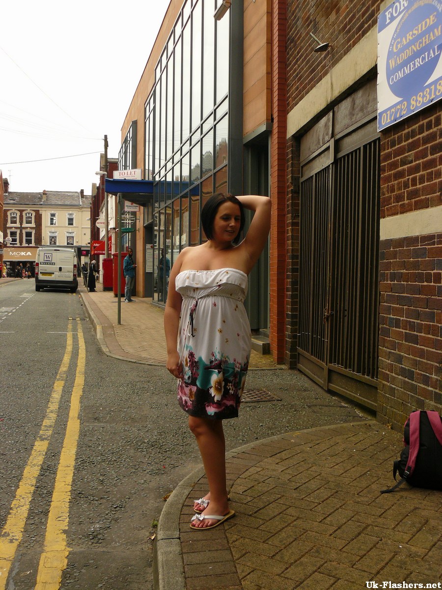 丰满的英国业余BBW在公共场合撩起裙子,炫耀天然巨乳和肥臀,献给喜爱曲线丰腴身材的人。