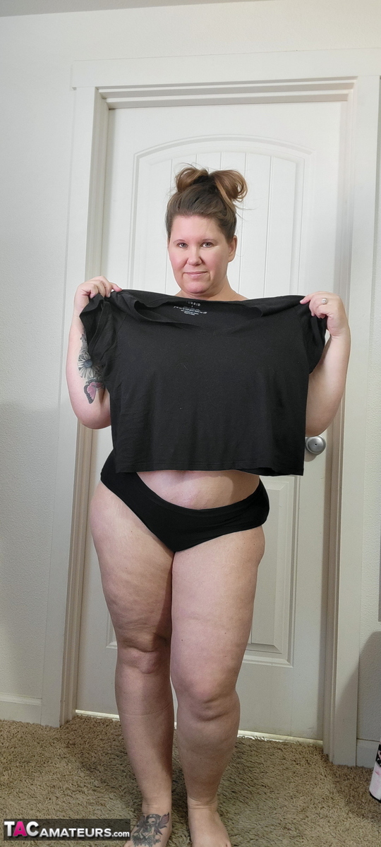 胖胖的业余巨乳克里斯·安在地毯上脱光 - 图片 9 / 16