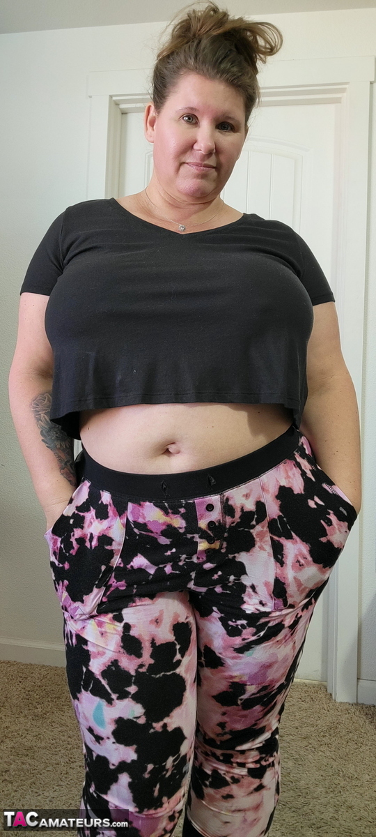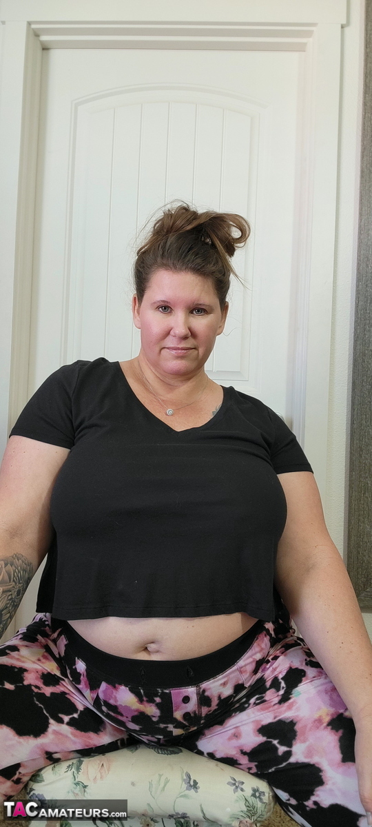 成熟的胖女人拥有大奶子从瑜伽裤中解放她多毛的阴道