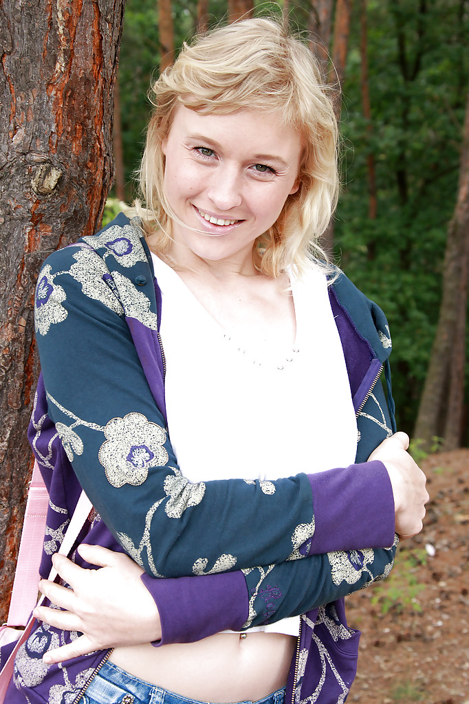 美丽少女达里娜B脱下白色短裤在户外裸体摆姿势