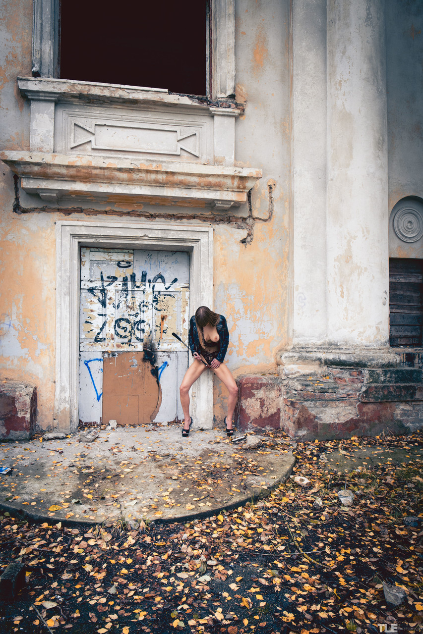 俄罗斯少女Natalie Russ穿着皮裤在户外脱光,炫耀完美身材、天生大奶、少女私处特写张开;The Life Erotic带来的高跟诱惑。