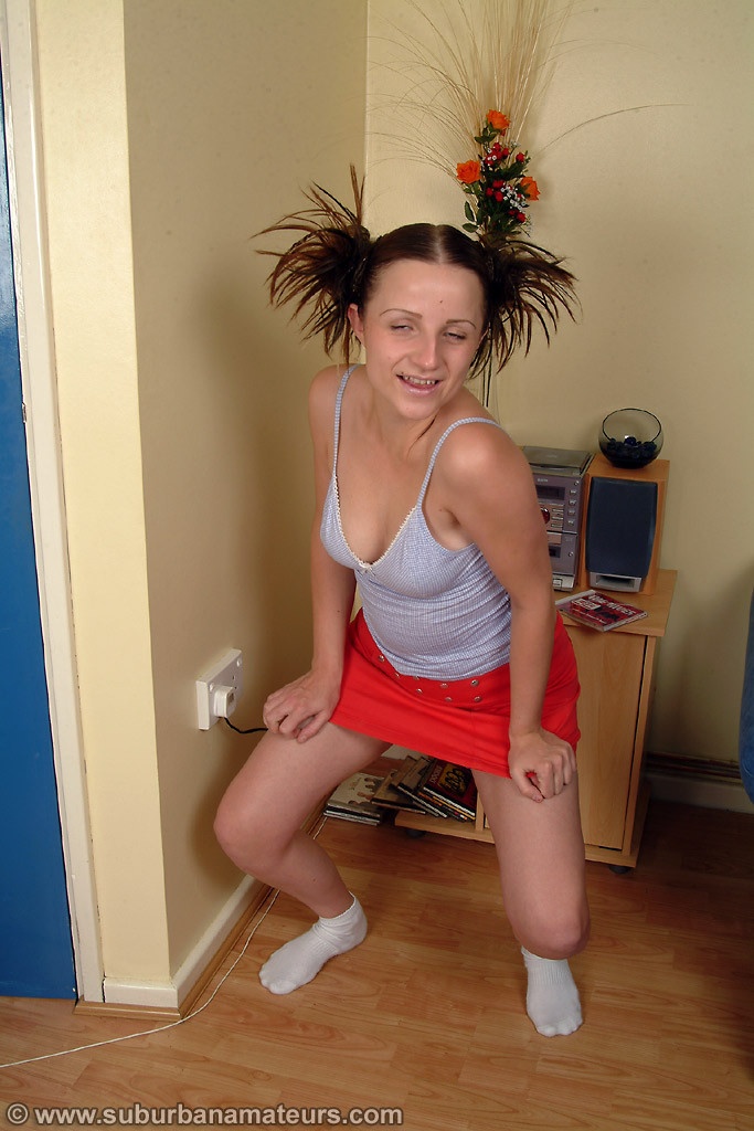 英国业余少女 Martine 顶着疯狂发型、穿着可爱袜子挑逗,翘起完美翘臀任你欣赏。