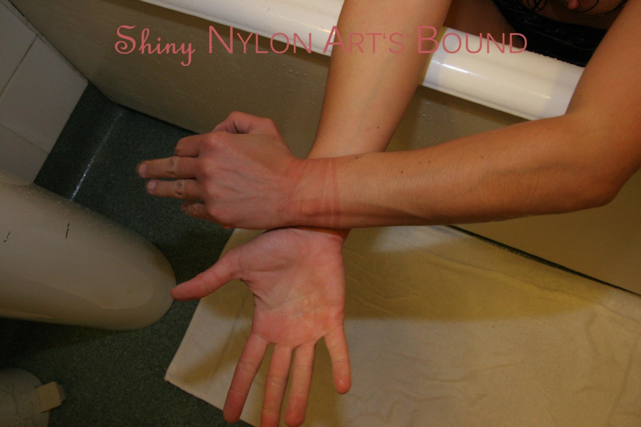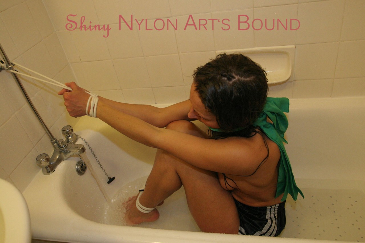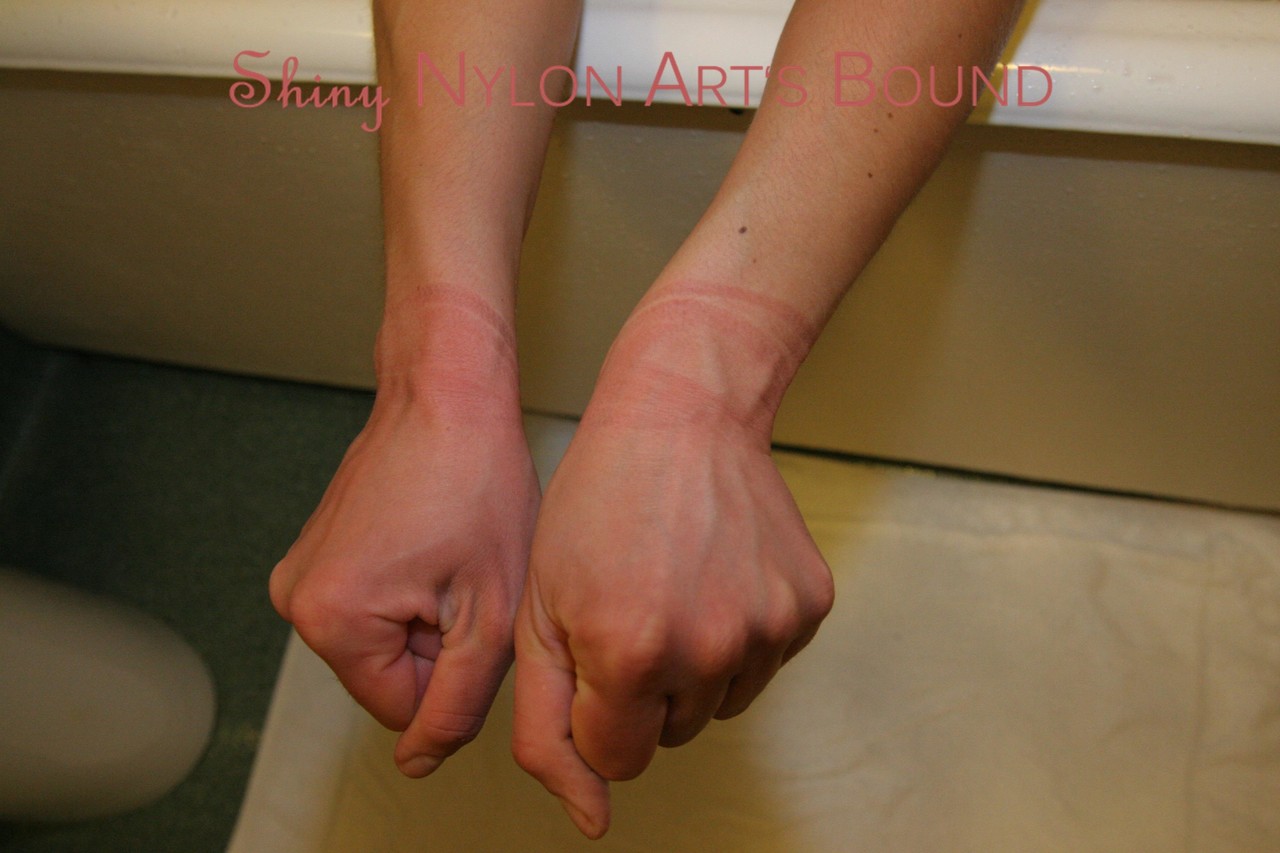 浴缸中的深色头发女性,双手和双脚被绑 - 图片 9 / 16