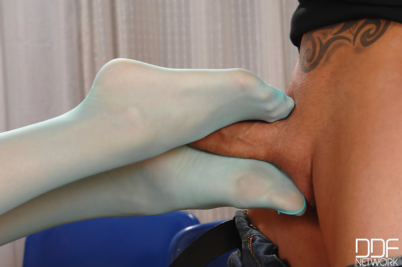 调皮的校园女孩Kitty用穿着尼龙袜的腿戏弄她的导师,脱到袜子,为的是脚趾吸吮,足交和特写校服乐趣。