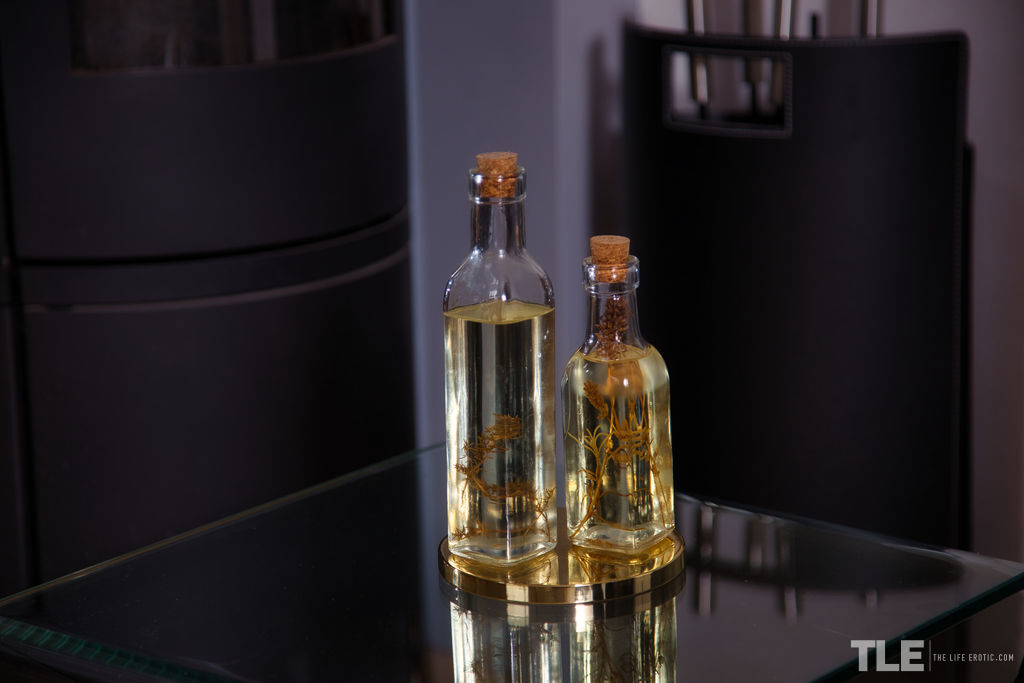 性感的深褐色青少年贝茨用黑色乳胶歌剧手套自慰