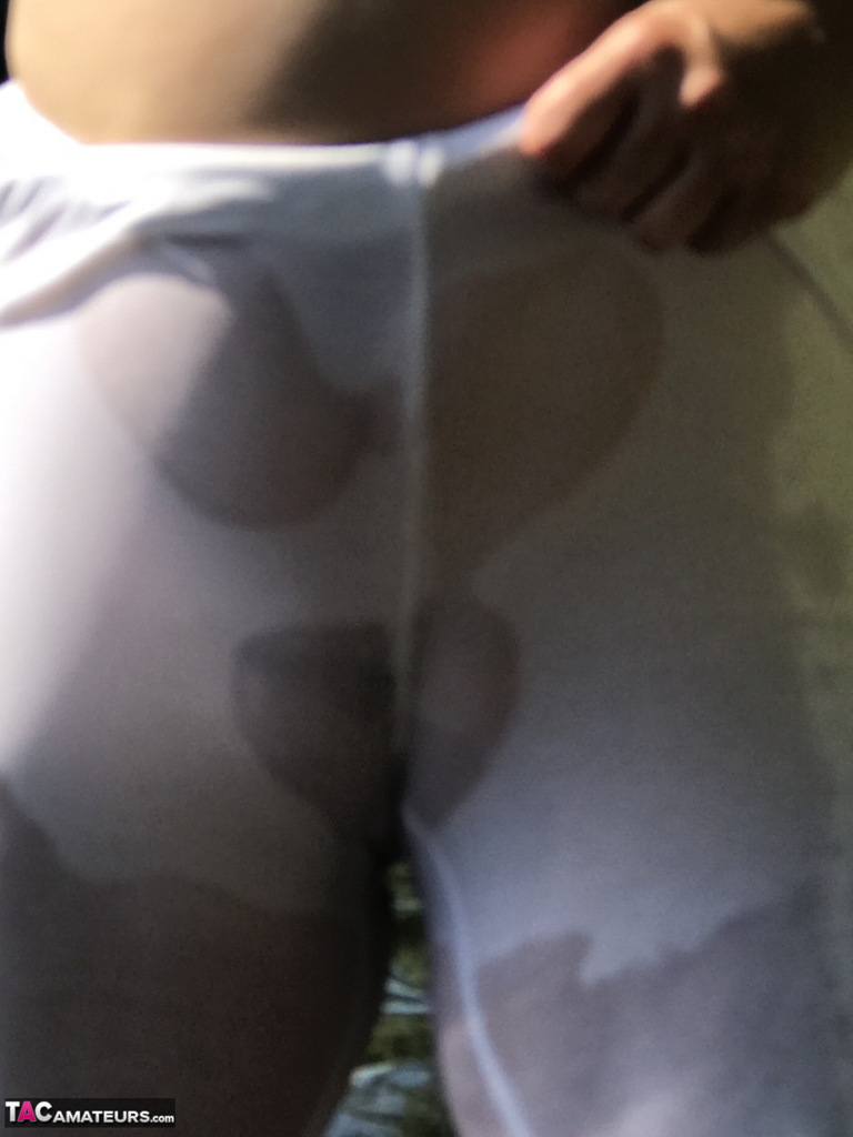 甜美的苏西,中年金发女郎,在湖边穿着湿透的连裤袜展示大胸部