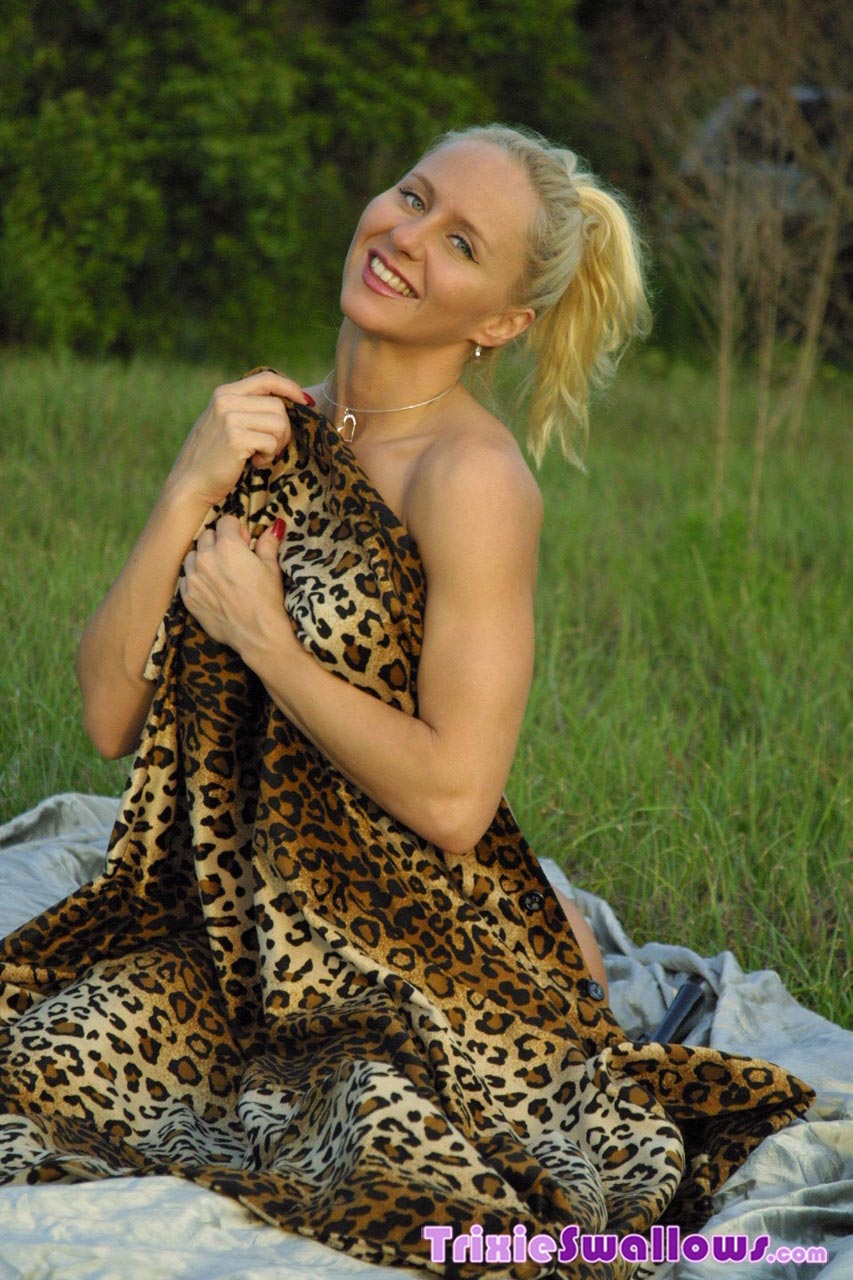 金发业余无毛户外炫耀假胸和大屁股 - 图库信息