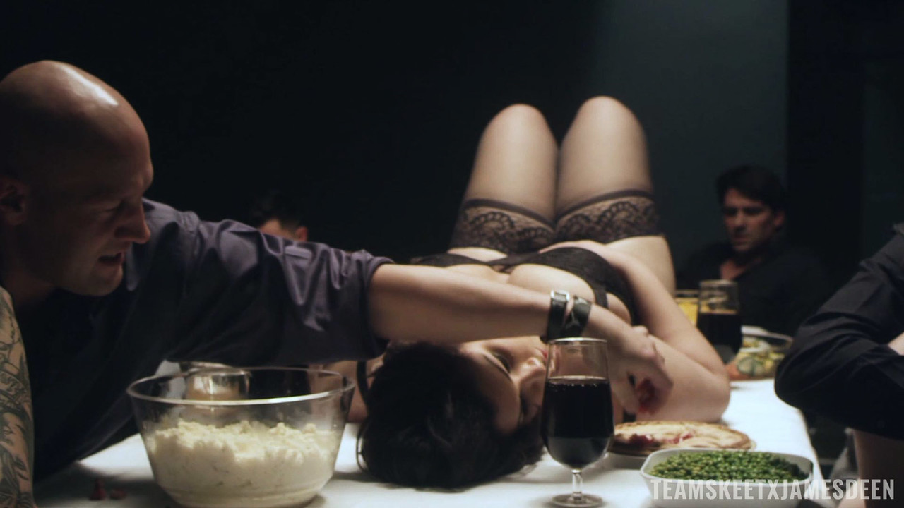 曲線美女穿絲襪在餐桌上挑逗 而她的閨蜜們瘋狂群交