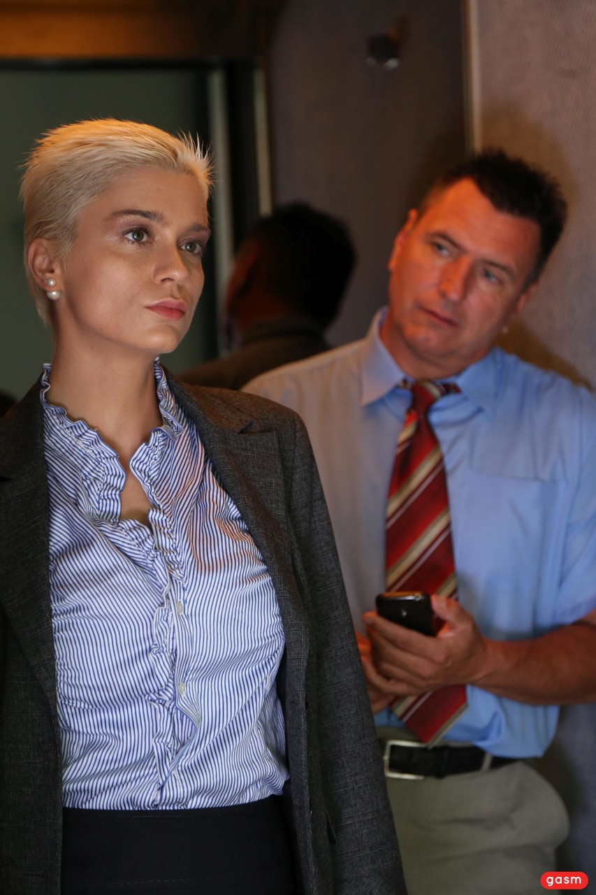 金发秘书 Mila Milan 穿着丝袜和高跟鞋挑逗,展示她紧身裙和修长美腿,在这组火辣的现实图集中。