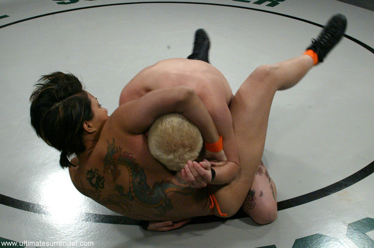终极投降:DragonLily 对 Syd Blakovich 裸体女同性恋摔跤 - 图库信息