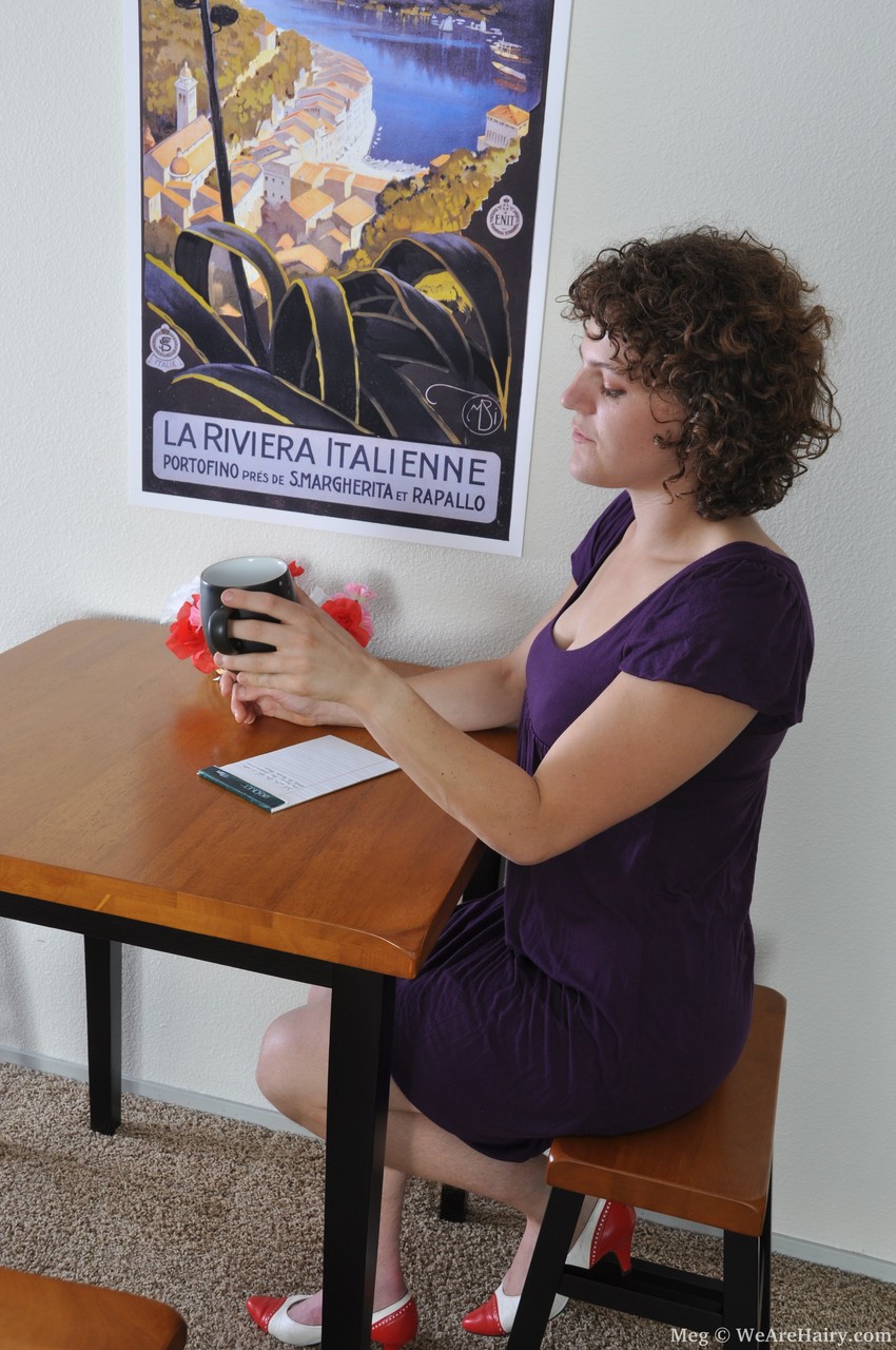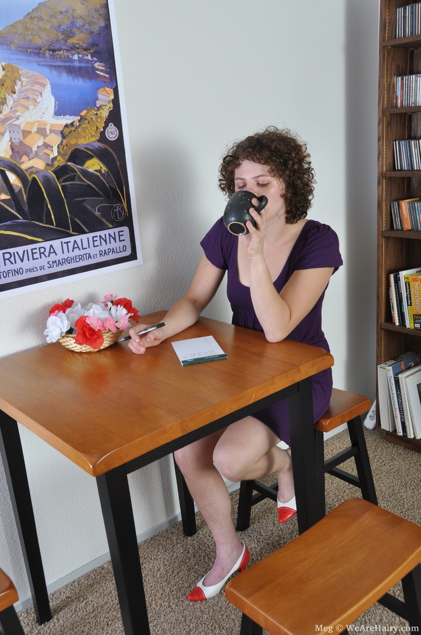 卷毛业余荡妇Meg四脚着地展示毛茸茸的洞 - 图库信息