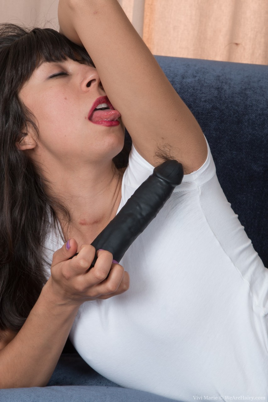 Vivi Marie 玩具 毛茸茸 的 阴道 穿着 内裤 和 裸体 坐在 沙发 上