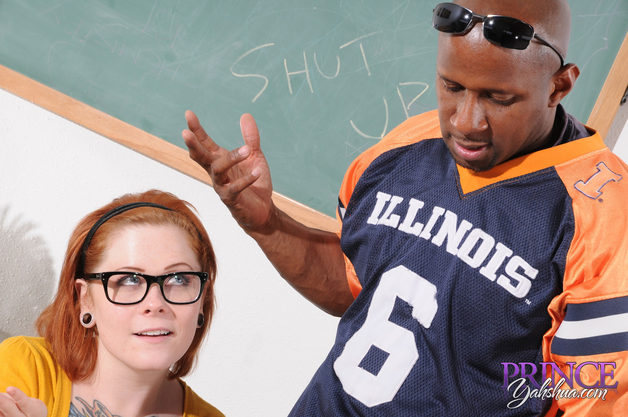 书呆子红发女孩Misty Dawn在课堂上为老师吸吮黑色鸡巴 - 图库信息