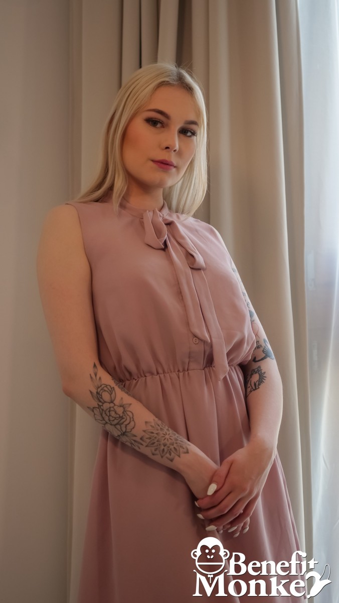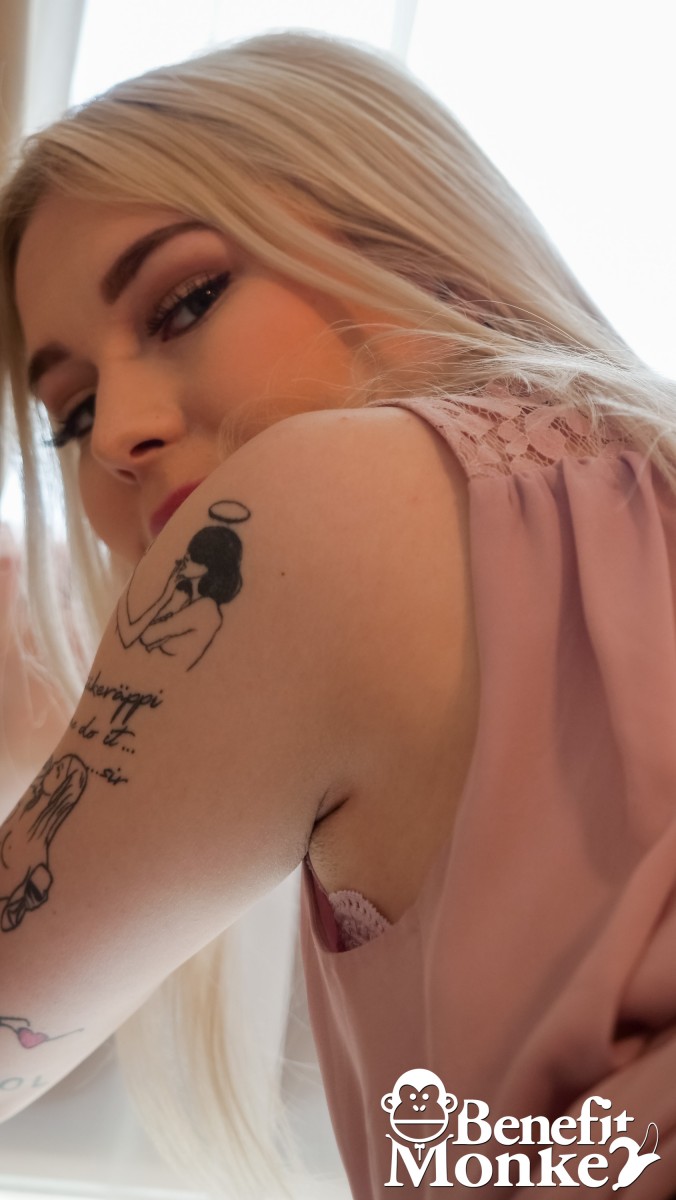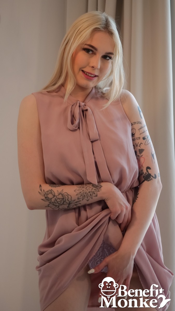 金发米米·西卡露出穿孔乳头然后展示阴道