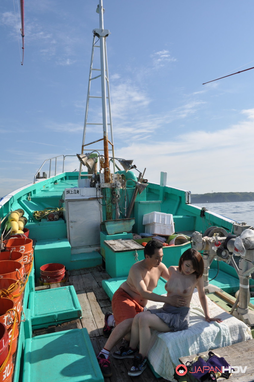 日本情侣植村美希和芹阳日向在渔船上做爱 - 图库信息