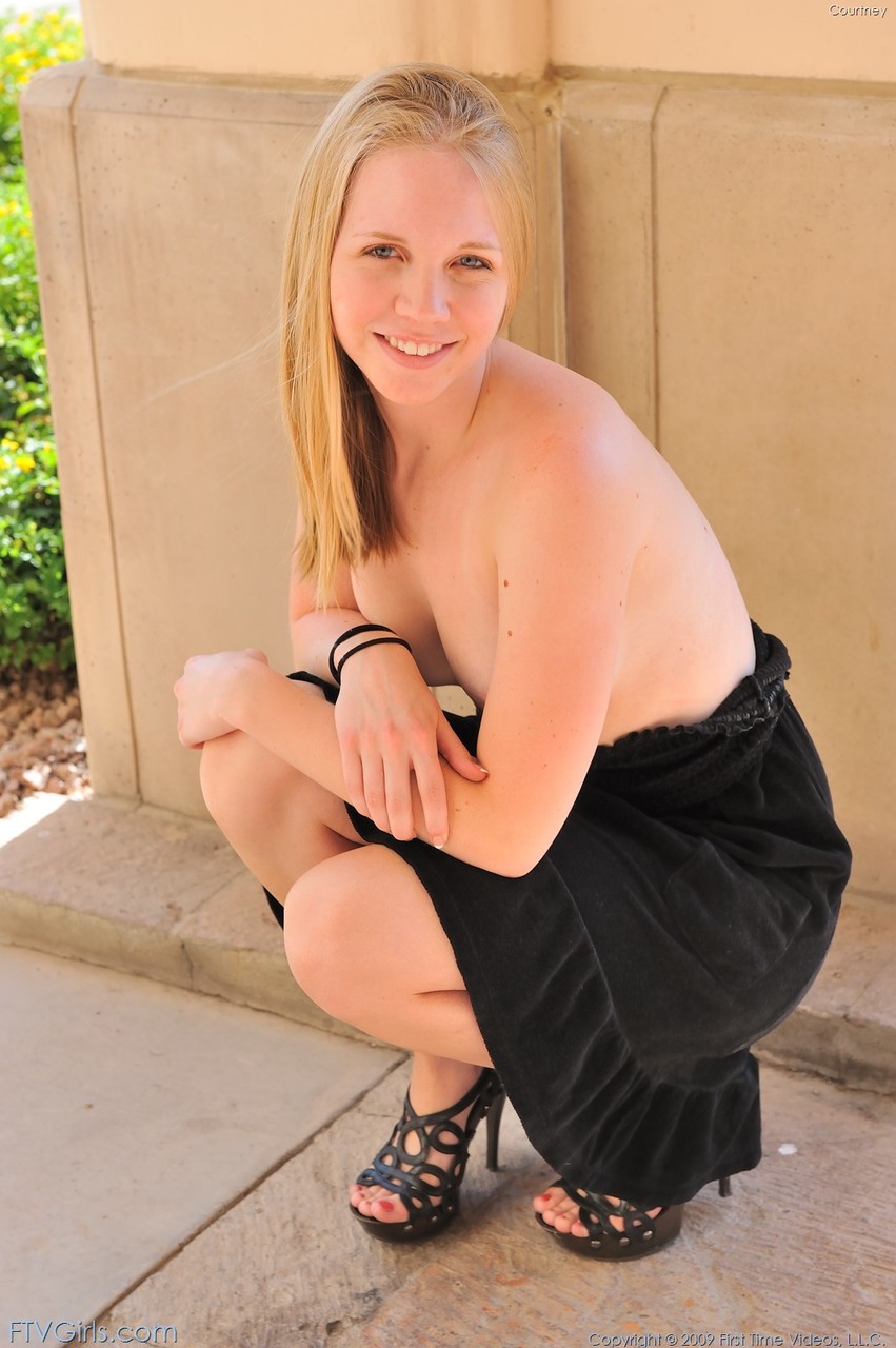 害羞的teen美女Courtney在户外大张开腿,魅力素人模特炫耀完美白皙肌肤,同时独自双穴玩弄。