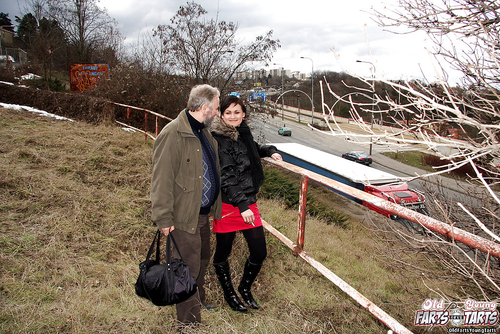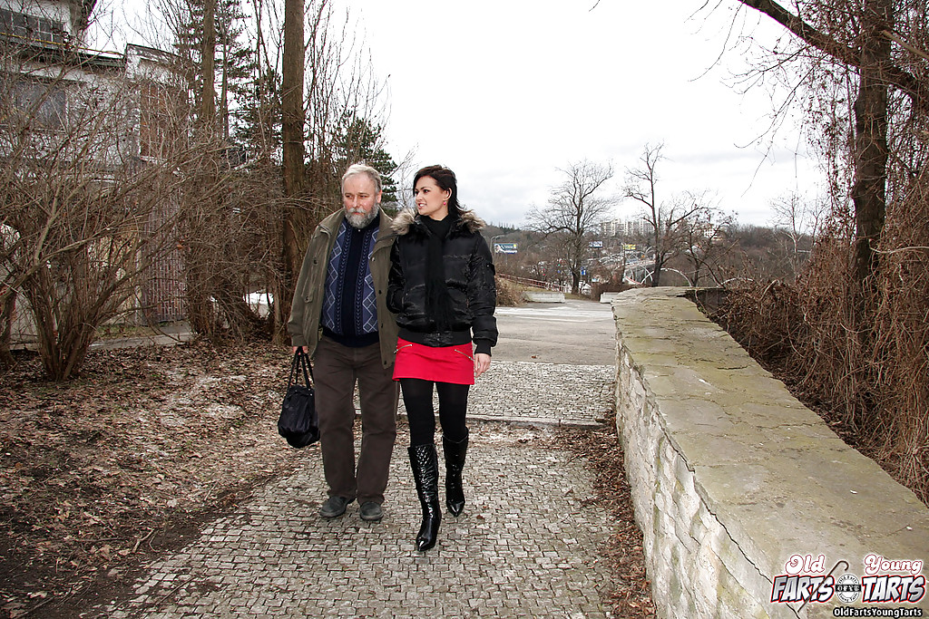 戶外老男人幹淫蕩寶貝Krystina穿黑靴 - 图库信息