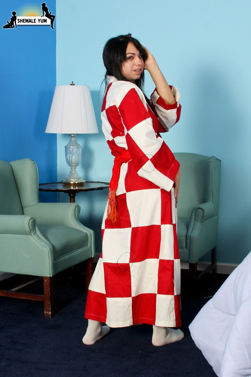Ryoko Asuka 在 Grooby Girls 独家裸照中炫耀她坚挺的大肉棒、小奶子和沉甸甸的蛋蛋——未割的巨屌人妖宝贝等你。