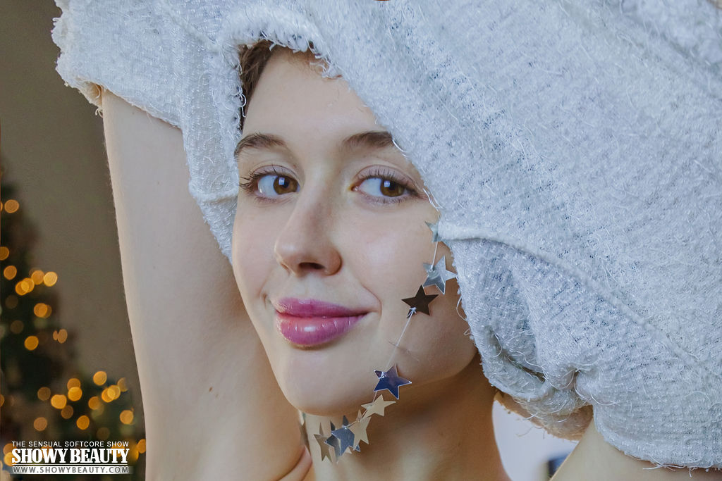 红发少女Riccarda在白色尼龙袜中脱衣,展现她丰满的乳房,紧密的阴道和浓密的PAWG屁股,在特写镜头中。
