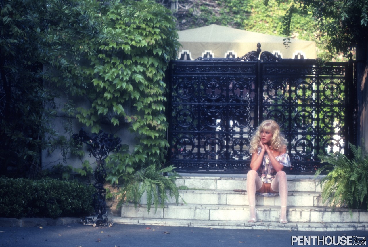 金发性感女神Danielle Martin穿着丝袜和高跟鞋,在户外炫耀她的丰满臀部和性感阴部,在这个成熟的魅力画廊中。