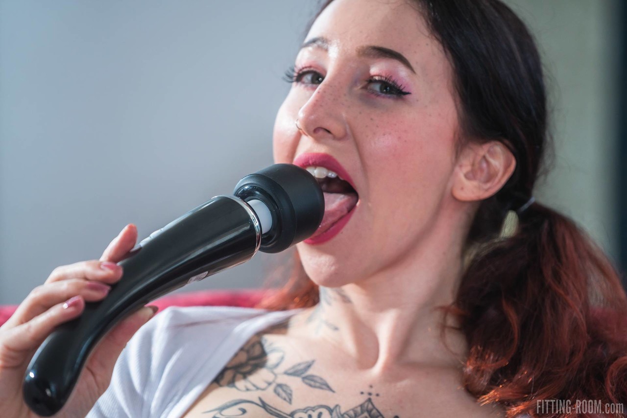 纹身少女Esluna Love穿着白色尼龙袜和高跟鞋,展现她完美的臀部和阴部,然后通过振动达到高潮。