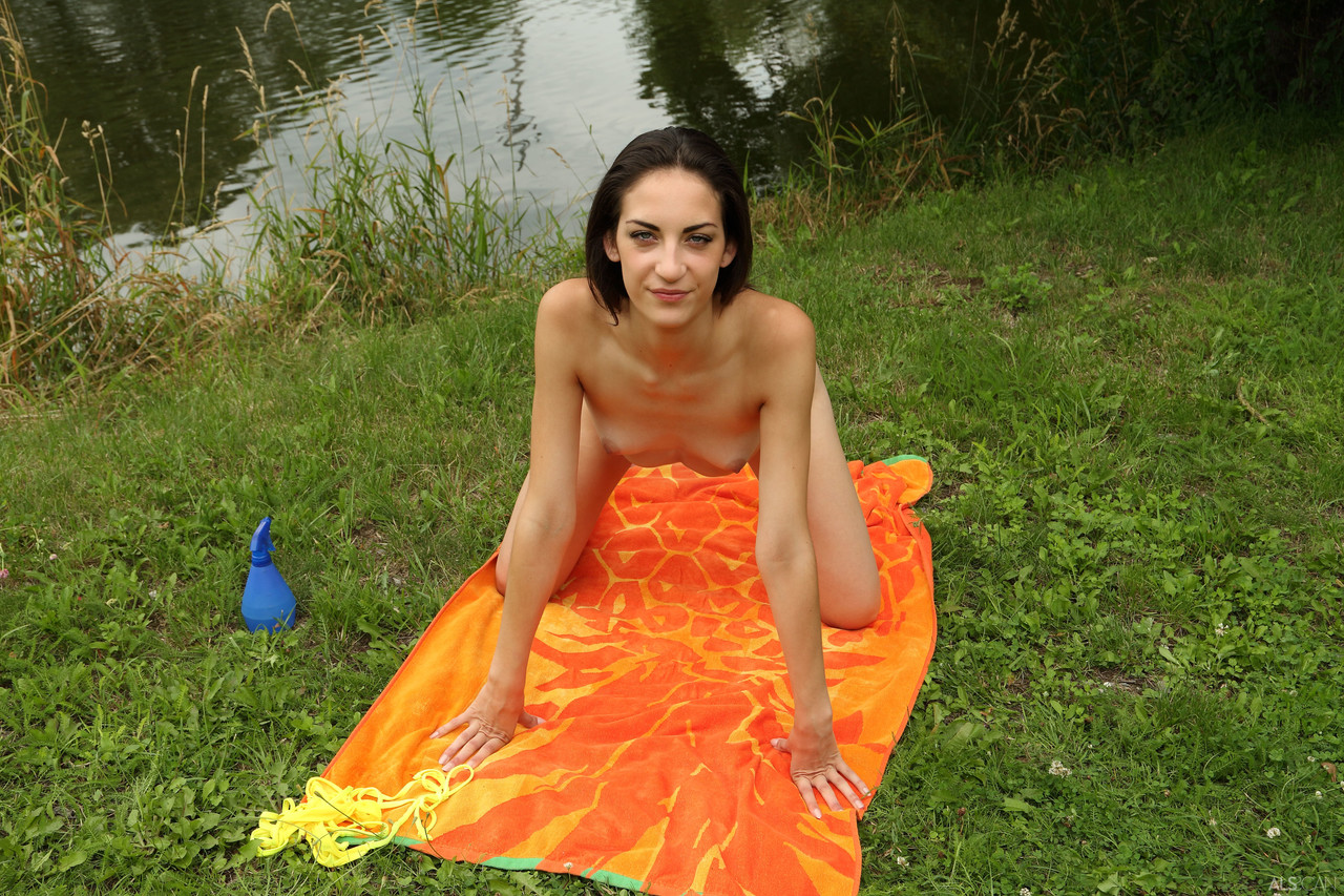 Niky Love 炫耀她的剃光少女阴道,大阴蒂特写,肛门挑逗,比基尼假屌玩耍,性感的PAWG布朗色头发自慰在ALS Scan照片中
