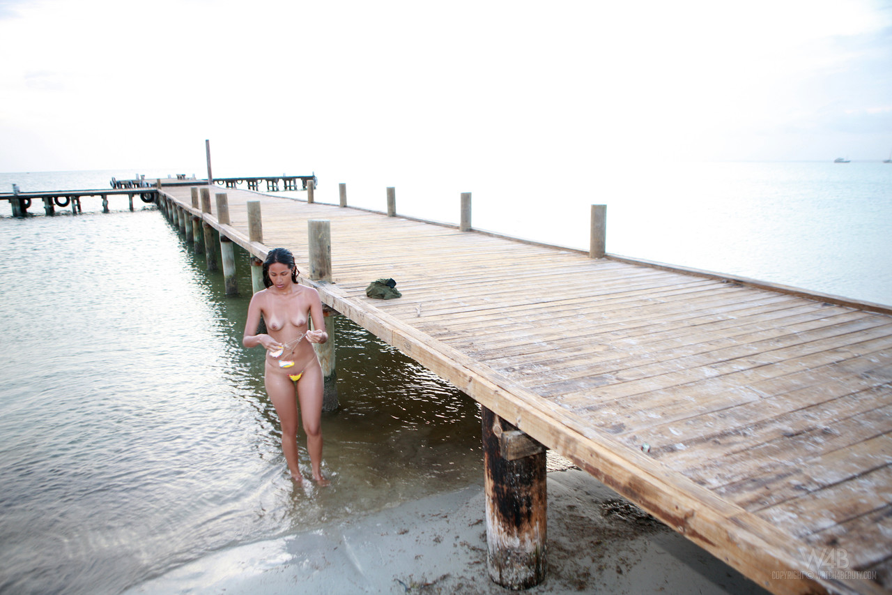 委內瑞拉美女露絲·梅迪娜在海灘上挑逗,完美的小乳房,緊密的剃光陰部和圓潤的PAWG屁股,在蒸汽情色圖庫中。