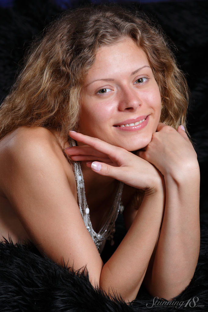 金发裸女青少年Oliwia A戴着珠子摆姿势,张开剃光的阴部拍摄特写魅力照片。大奶美女,乳头坚挺,长腿,完美的青少年屁股和金发双脚。