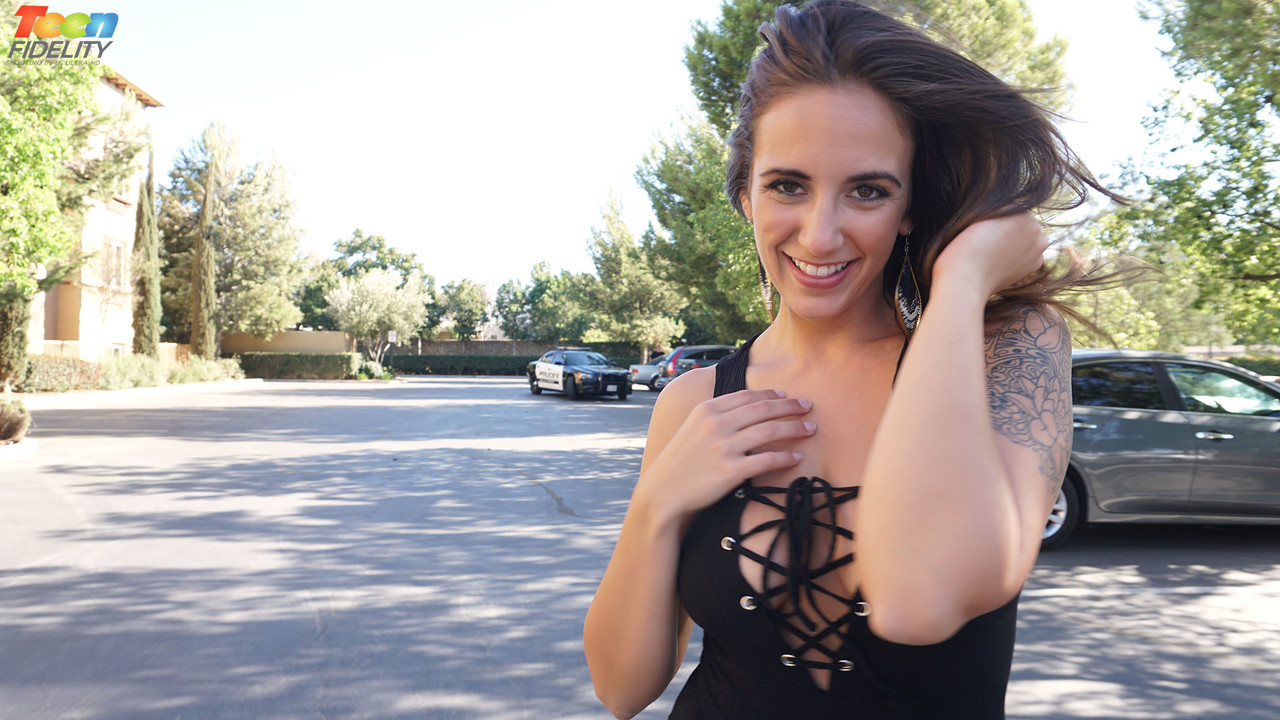 胸部丰满的少女莱拉伦敦在公共场合展示自己,跪下进行一个乱七八糟的POV口交,最终在她剃光的阴道上得到一发热烈的精液。