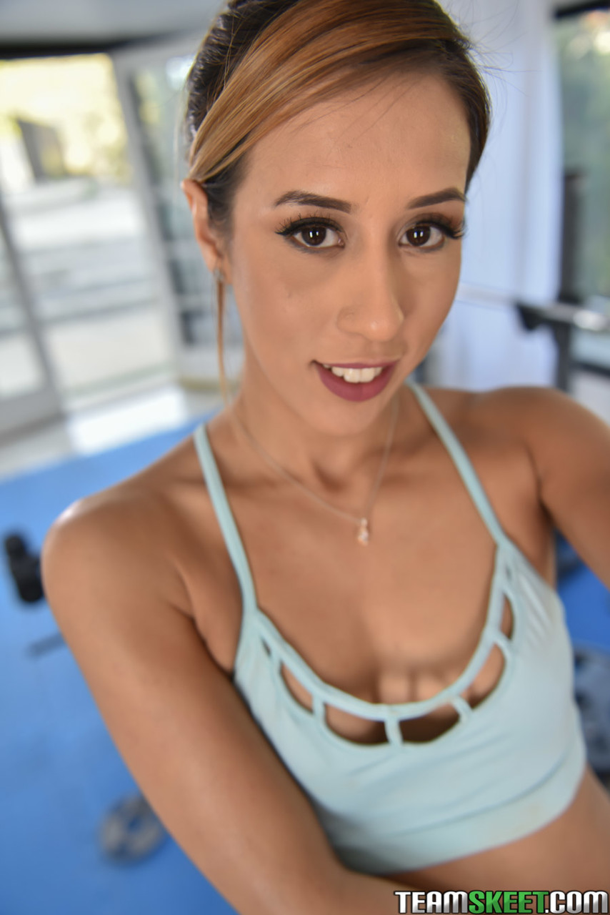黛米·洛佩兹给心形翘臀抹油 健身后接射精 - 图库信息