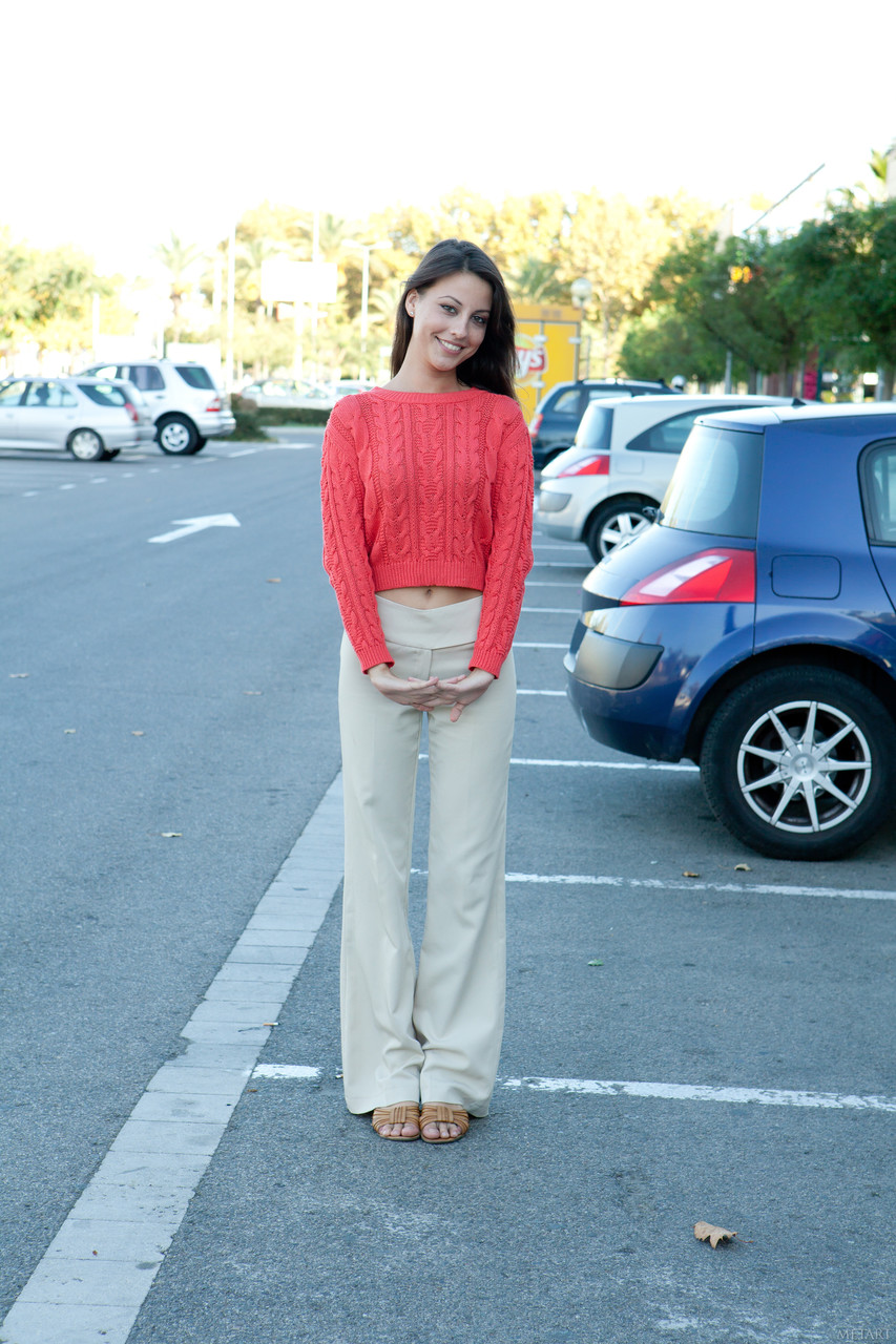美丽少女达里娜B脱下白色短裤在户外裸体摆姿势