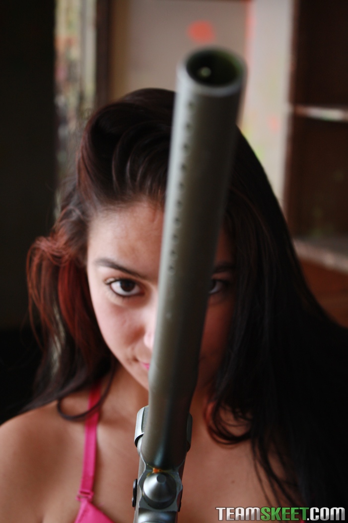 拉丁裔黑发少女Arelis Lopez 玩弄漆弹枪 - 图片 9 / 21