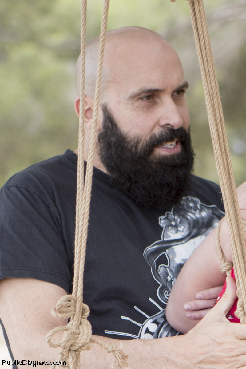 Luna Rival 在公共场所被绑住并被轮奸的 BDSM 团体性行为 - 图库信息