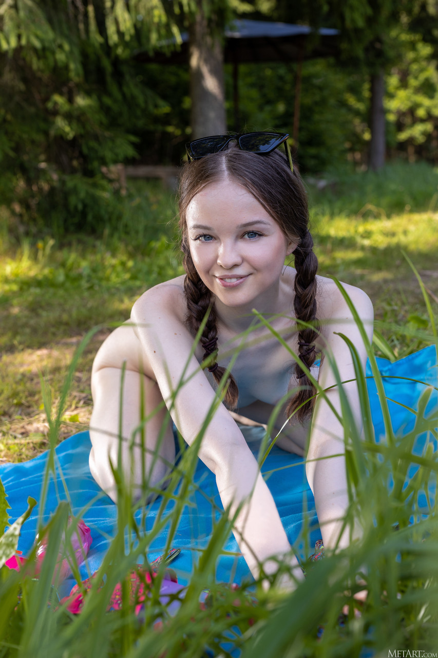 身材娇小的辫子少女Shea在河边脱下微型比基尼,展现她紧致的少女阴道和可爱的裸体,进行户外裸体主义挑逗。