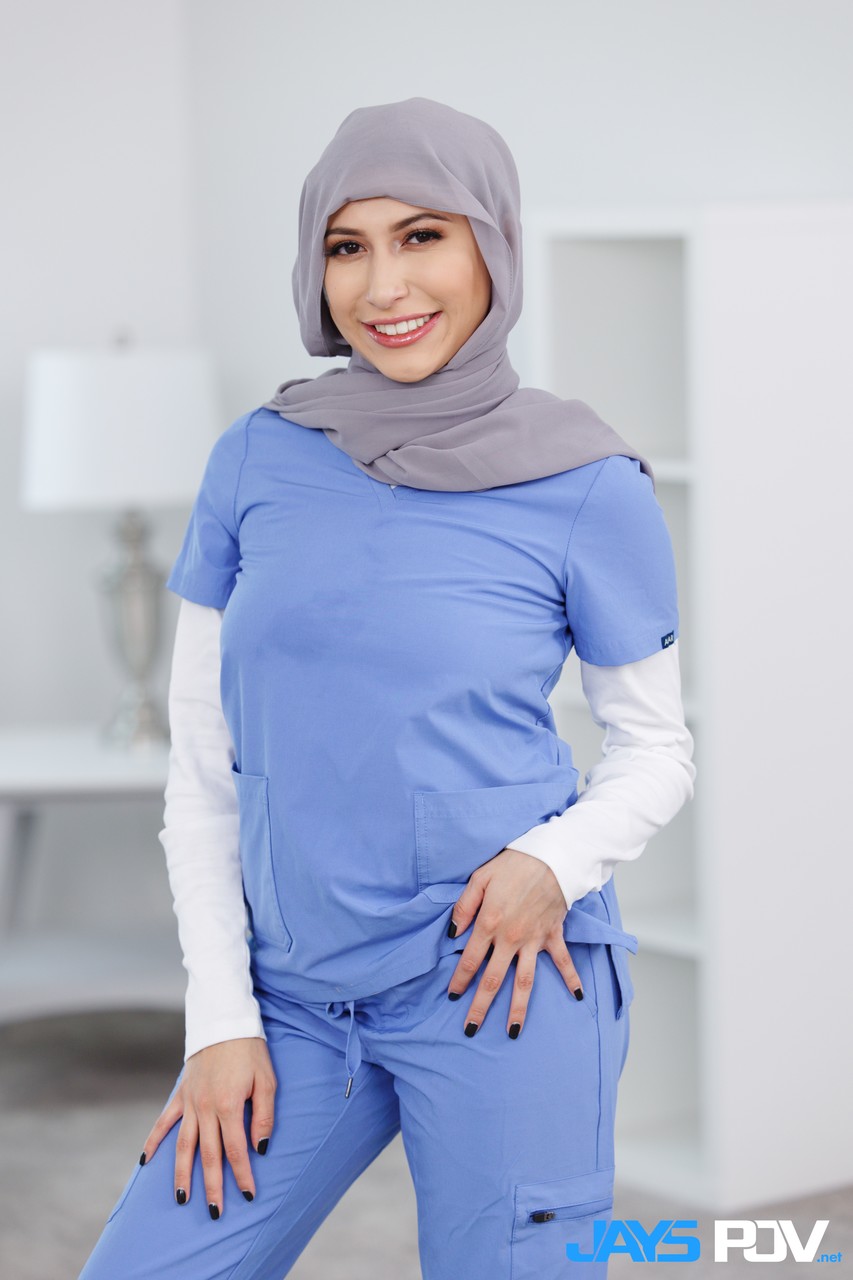 异国风情的色情明星米娅·卡莉法展示漂亮的胸部和剃光的阴部