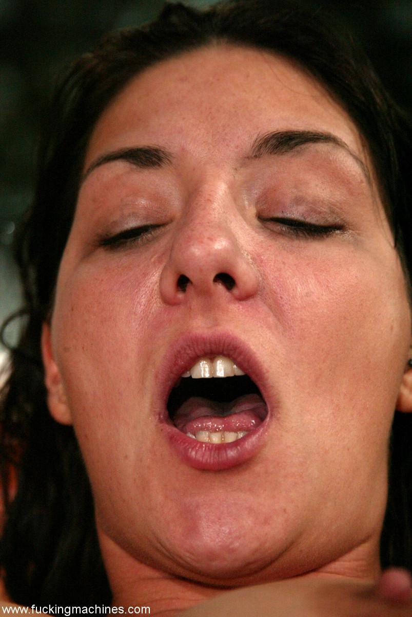 淫荡棕发女接受肛交与阴道机械插入 - 图库信息