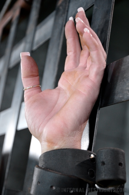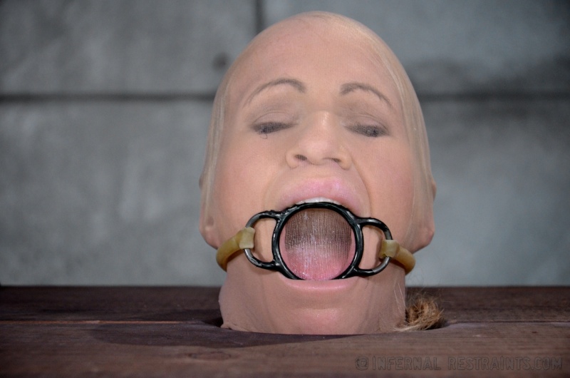 金发熟女西蒙·索奈在地下室地牢中变得无助 - 图库信息