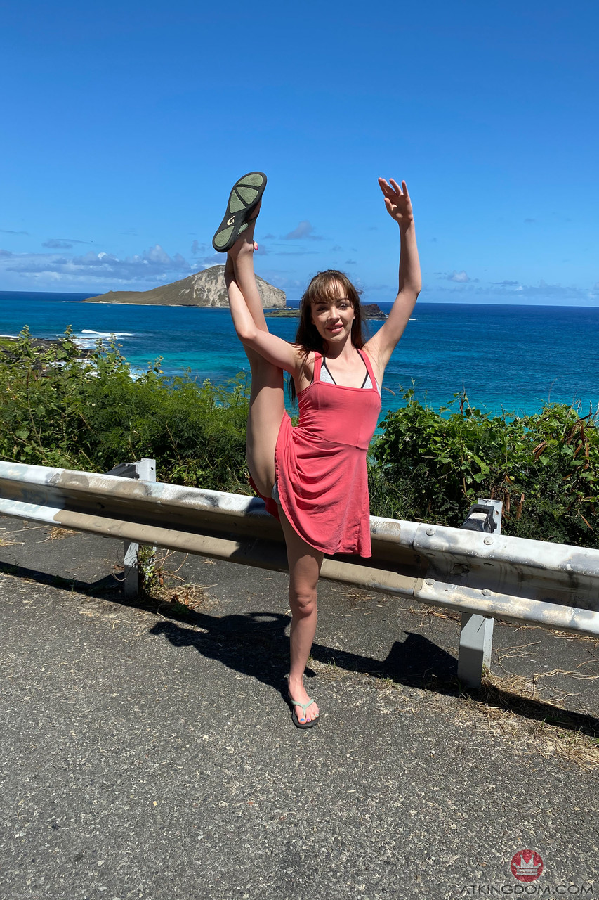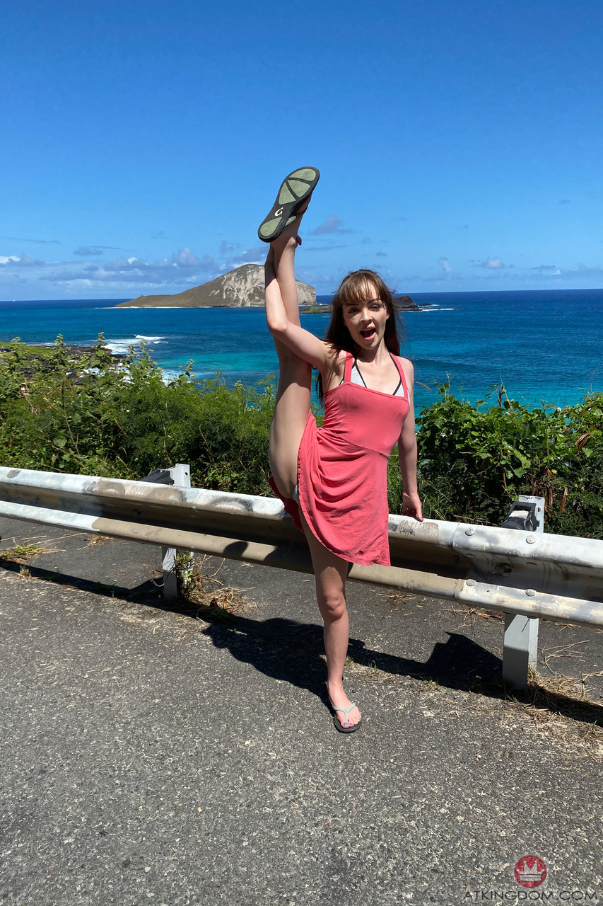 业余模特Aliya Brynn在户外穿着骆驼趾内裤炫耀她的大屁股和阴唇,张开她娇小的少女阴道并展示她纤细的双脚。